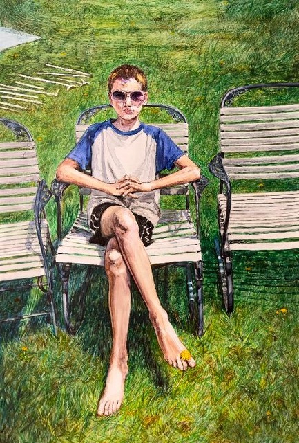 2024 – Connie Layne Memorial Award #2: “Too Many Brad Pitt Movies” by Jennifer Sowders, watercolor & watercolor pencil on yupo, 18.75”x12.75”, professional division (Jane Flewellen & Bev Goldie, judges)