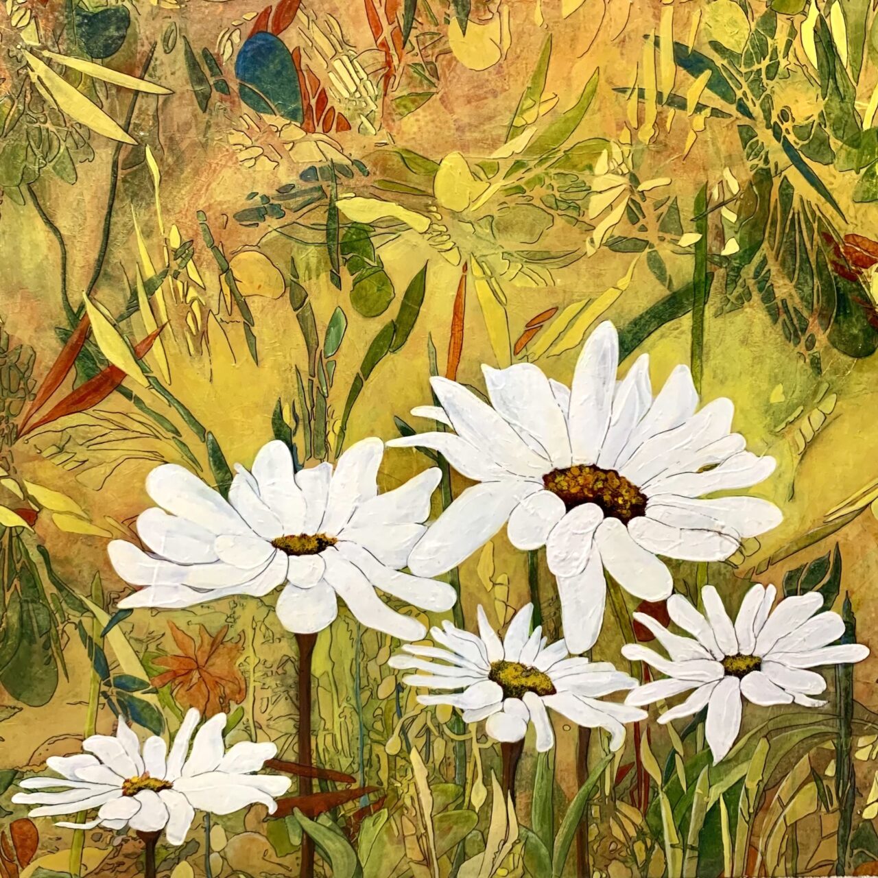 Floral Play, 2 – Acrylic Paints on Wood Panel, 30 x 3- x 1.5, Contact Artist