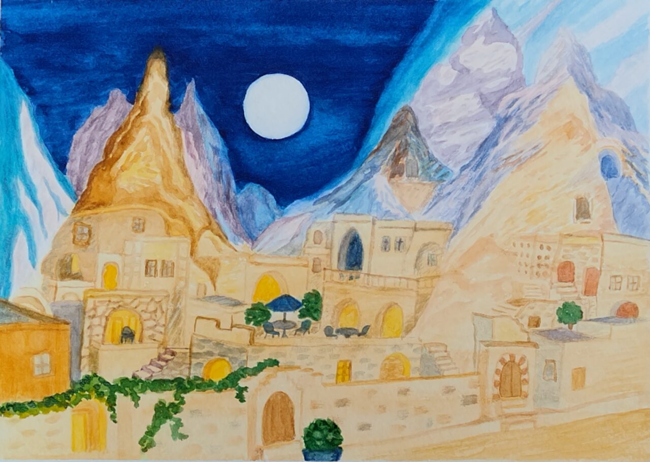 Moon Over Cappadocia – Watercolor, 5″x7″, $75