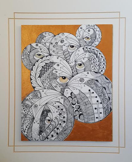 Bird Snakes Watching – 18″ x 15″ (framed) Ink and Acrylic $180